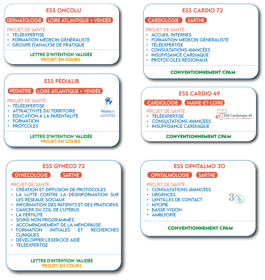 - Une ESS est une organisation constituée de médecins spécialistes, hors médecine générale, liés par une volonté commune d’exercer leurs activités de manière coordonnée sur un territoire donné