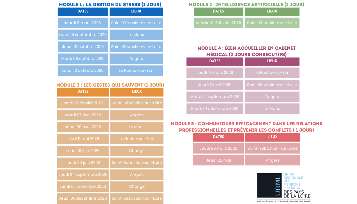 L’Union Régionale des Médecins Libéraux des Pays de La Loire vous propose le calendrier 2026 des formations pour les secrétariats médicaux
